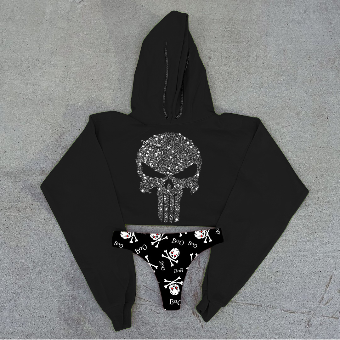 Satanic Girl Printed Women's Cropped Hoodie & Thong Sets