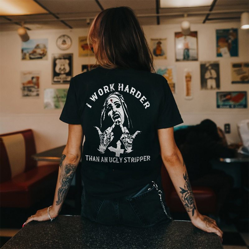 I Work Harder Than An Ugly Stripper Printed Women's T-shirt