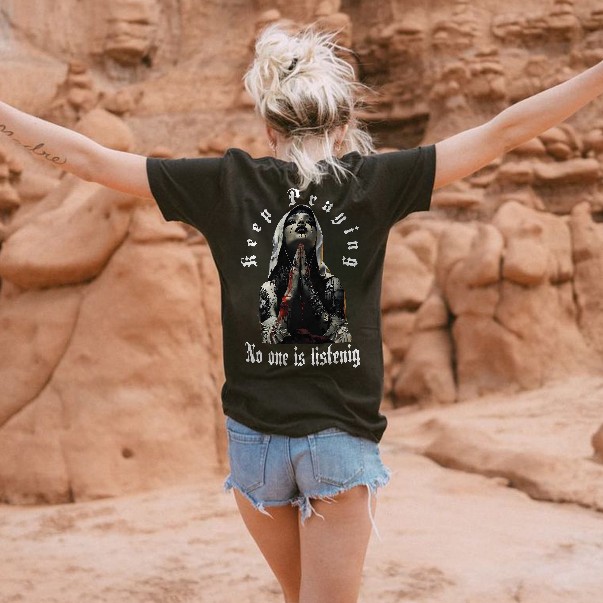 Keep Praying No One Is Listening Printed Women's T-shirt