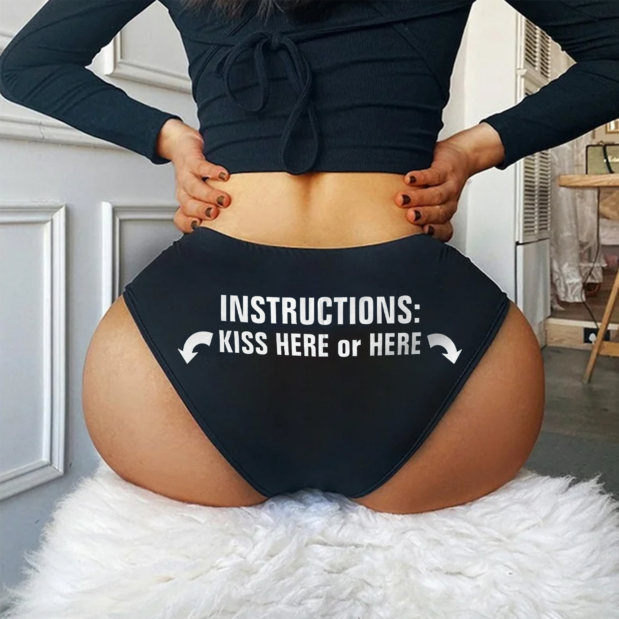 Instructions: Kiss Here Or Here Printed Sexy Panties