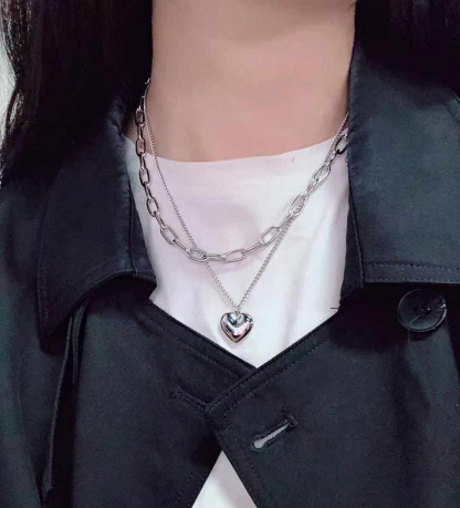 Product Name Heart Pendant Double Layered Chains Chic Necklace