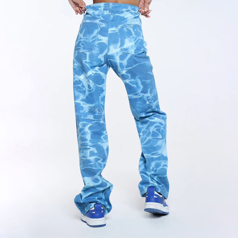 High Waist Straight Leg All-match Women's Tie-dye Casual Jeans