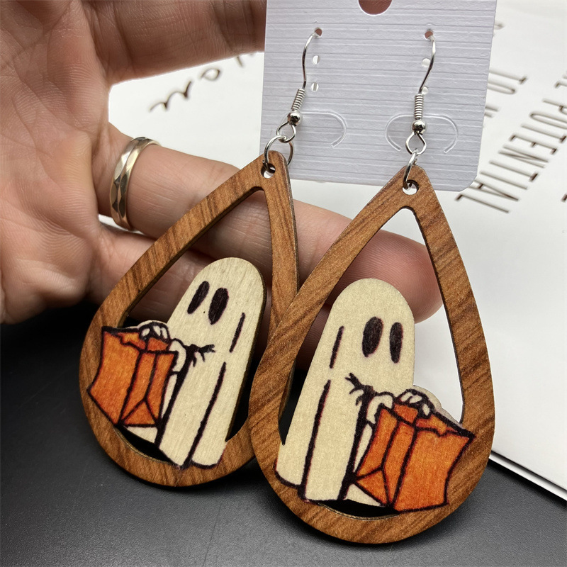 Long Earrings With Wood Earrings Reversible Halloween Earrings