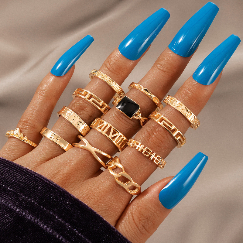 Alloy all-match ladies trendy moon letter 13-piece ring set