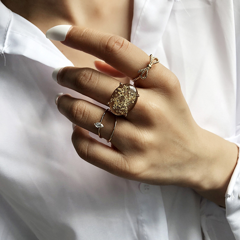 Creative ladies pearl alloy fashion 4-piece rings set
