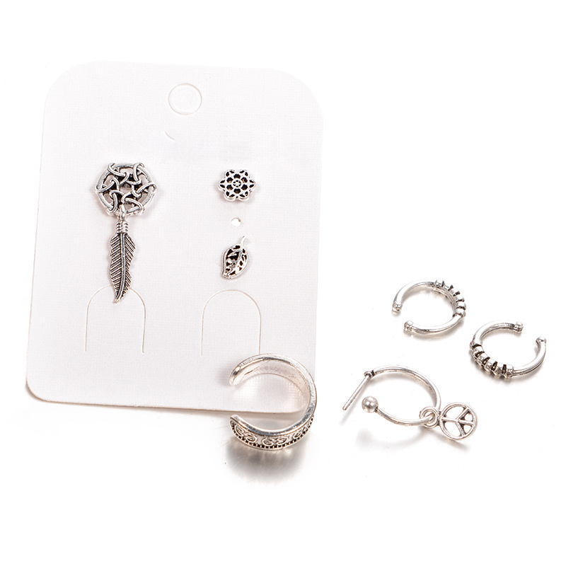 Ethnic dreamcatcher leaf design earrings 7-piece set
