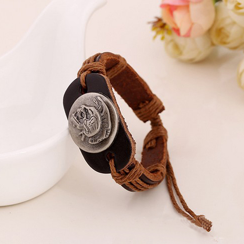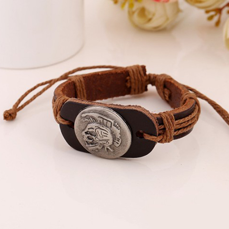 Halloween skull and eagle leather bracelet