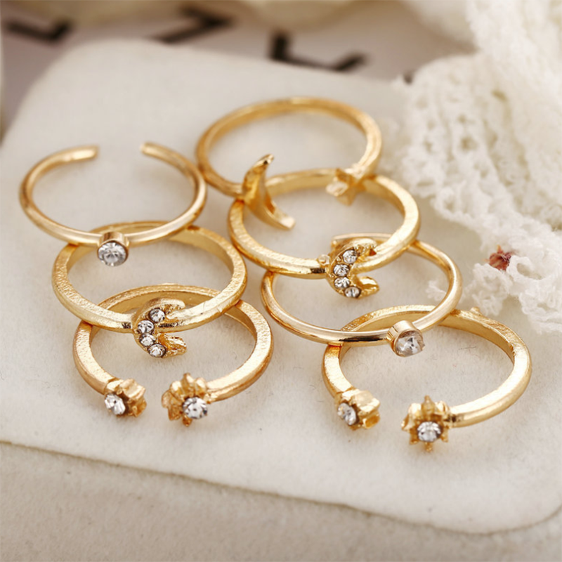 Temperament stars and moon 7-piece ring