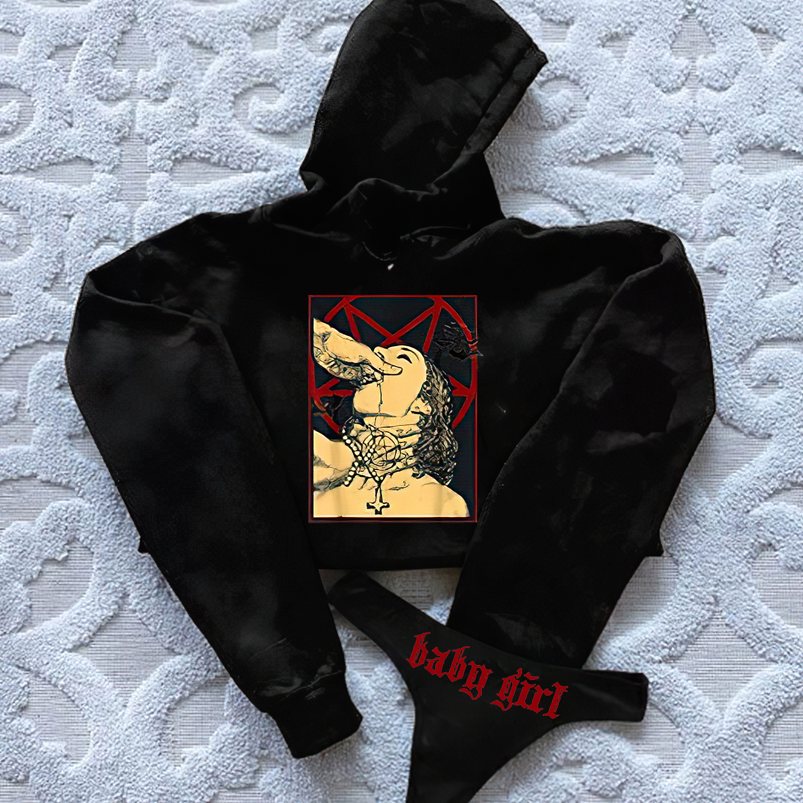 Satanic Girl Printed Women's Cropped Hoodie & Thong Sets
